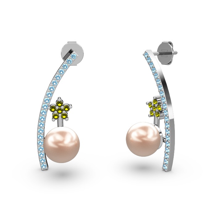 Pembe inci, akuamarin ve peridot 14 ayar beyaz altın küpe