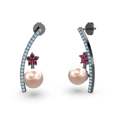 Pembe inci, akuamarin ve rodolit garnet 925 ayar siyah rodyum kaplama gümüş küpe