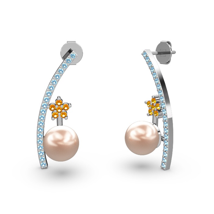Pembe inci, akuamarin ve sitrin 14 ayar beyaz altın küpe