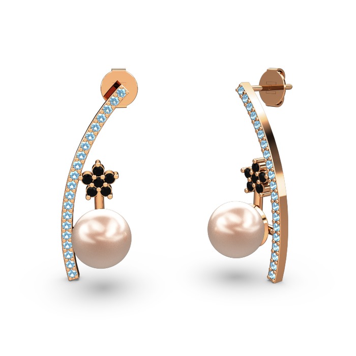 Pembe inci, akuamarin ve siyah zirkon 925 ayar rose altın kaplama gümüş küpe
