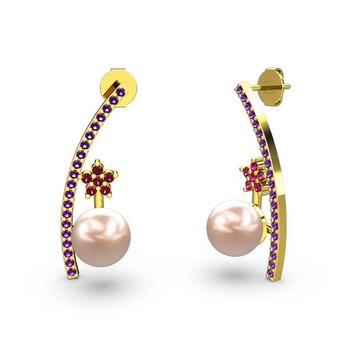 Pembe inci, ametist ve rodolit garnet 14 ayar altın küpe