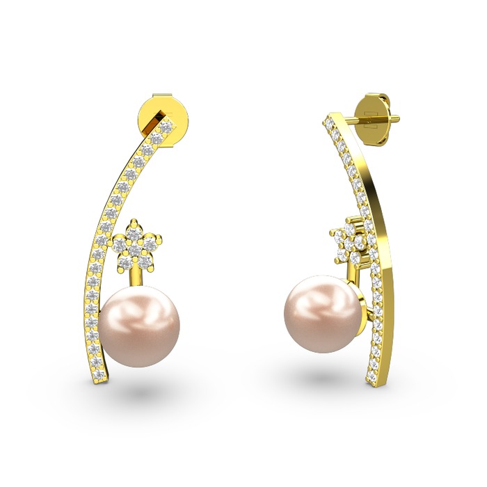 Pembe inci ve beyaz zirkon 14 ayar altın küpe