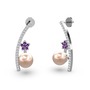 Pembe inci, beyaz zirkon ve ametist 8 ayar beyaz altın küpe