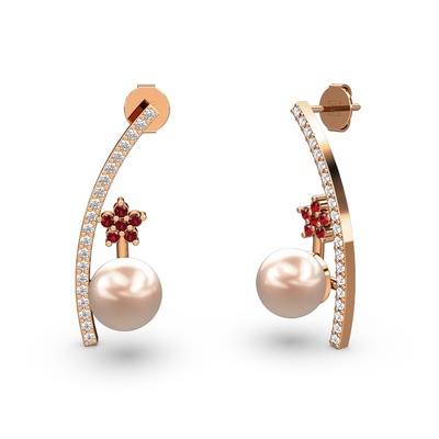 Pembe inci, beyaz zirkon ve garnet 18 ayar rose altın küpe