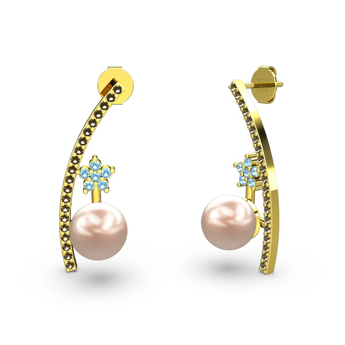 Pembe inci, dumanlı kuvars ve akuamarin 925 ayar altın kaplama gümüş küpe