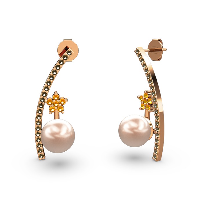 Pembe inci, dumanlı kuvars ve sitrin 14 ayar rose altın küpe