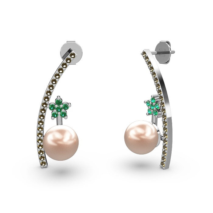Pembe inci, dumanlı kuvars ve yeşil kuvars 14 ayar beyaz altın küpe