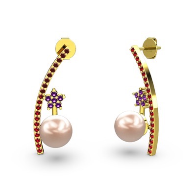 Pembe inci, garnet ve ametist 14 ayar altın küpe