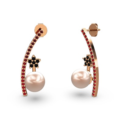Pembe inci, garnet ve siyah zirkon 925 ayar rose altın kaplama gümüş küpe