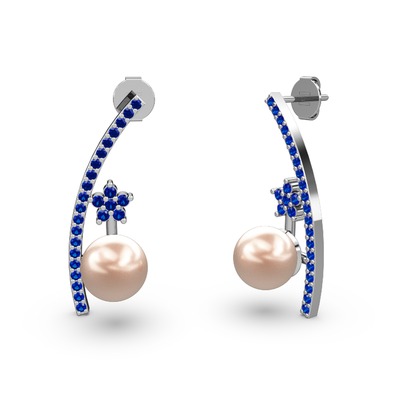 Pembe inci ve lab safir 8 ayar beyaz altın küpe