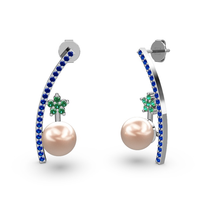 Pembe inci, lab safir ve yeşil kuvars 925 ayar gümüş küpe