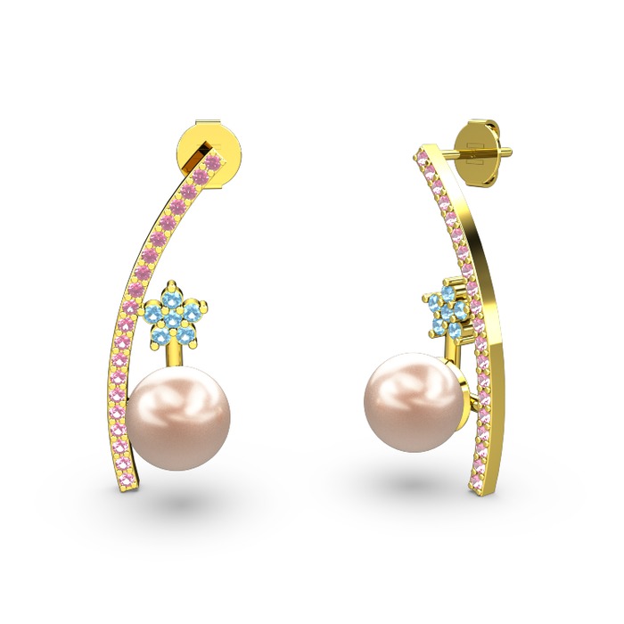 Pembe inci, pembe kuvars ve akuamarin 925 ayar altın kaplama gümüş küpe