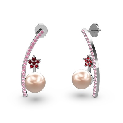 Pembe inci, pembe kuvars ve garnet 8 ayar beyaz altın küpe