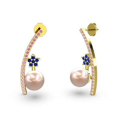 Pembe inci, pembe kuvars ve lab safir 14 ayar altın küpe