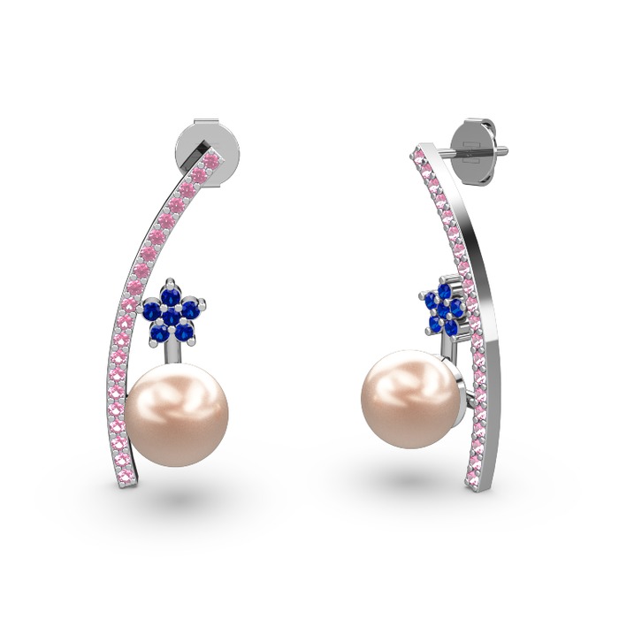 Pembe inci, pembe kuvars ve lab safir 14 ayar beyaz altın küpe