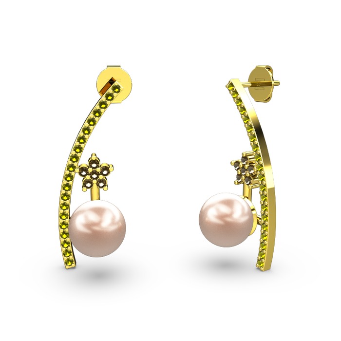 Pembe inci, peridot ve dumanlı kuvars 14 ayar altın küpe