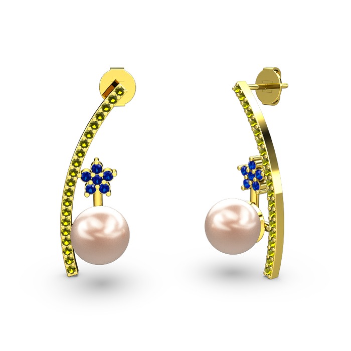 Pembe inci, peridot ve lab safir 14 ayar altın küpe