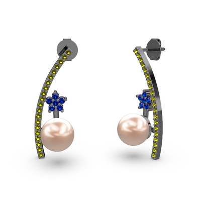 Pembe inci, peridot ve lab safir 925 ayar siyah rodyum kaplama gümüş küpe