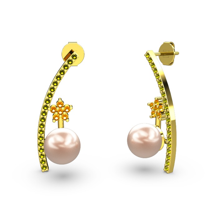 Pembe inci, peridot ve sitrin 8 ayar altın küpe