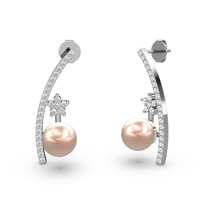 Pembe inci, pırlanta ve beyaz zirkon 18 ayar beyaz altın küpe (0.18 karat)