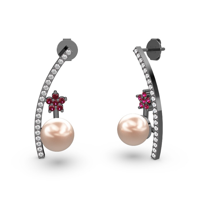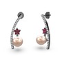 Pembe inci, pırlanta ve rodolit garnet 925 ayar siyah rodyum kaplama gümüş küpe (0.18 karat)