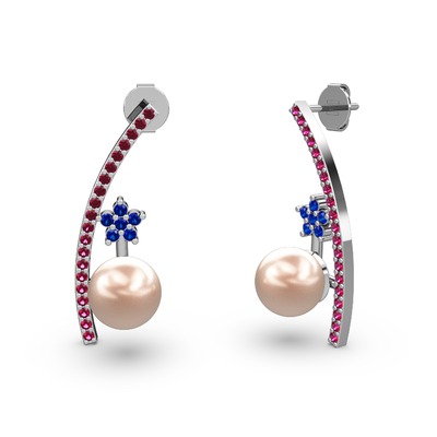 Pembe inci, rodolit garnet ve lab safir 18 ayar beyaz altın küpe