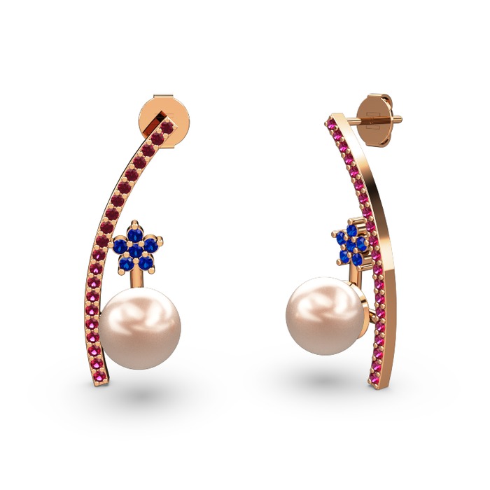 Pembe inci, rodolit garnet ve lab safir 8 ayar rose altın küpe