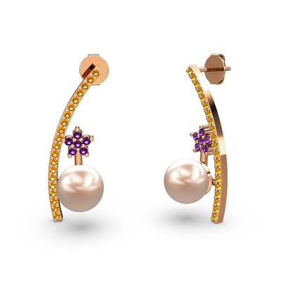Pembe inci, sitrin ve ametist 14 ayar rose altın küpe