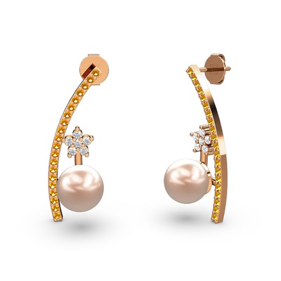 Pembe inci, sitrin ve beyaz zirkon 18 ayar rose altın küpe