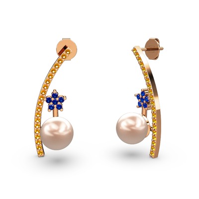 Pembe inci, sitrin ve lab safir 8 ayar rose altın küpe