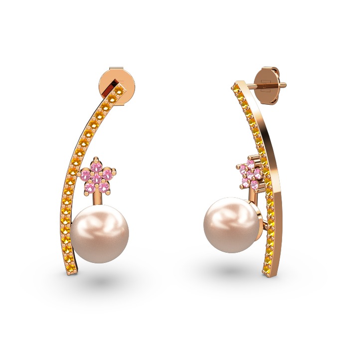 Pembe inci, sitrin ve pembe kuvars 925 ayar rose altın kaplama gümüş küpe