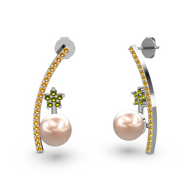 Pembe inci, sitrin ve peridot 18 ayar beyaz altın küpe