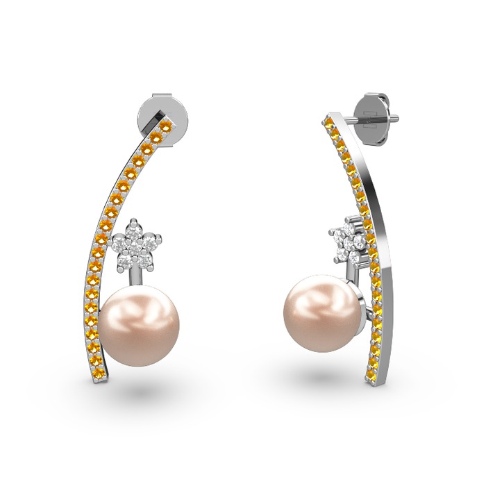 Pembe inci, sitrin ve pırlanta 14 ayar beyaz altın küpe (0.44 karat)