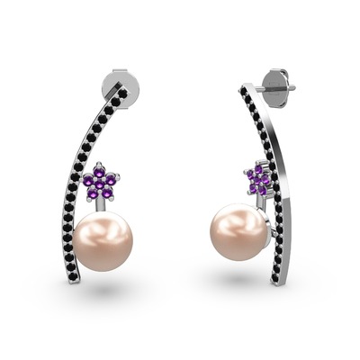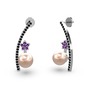 Pembe inci, siyah zirkon ve ametist 8 ayar beyaz altın küpe