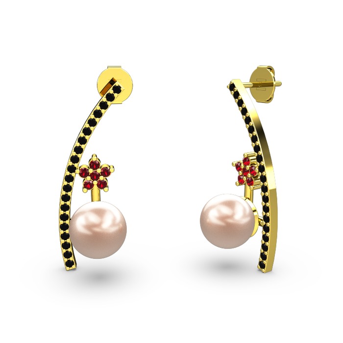 Pembe inci, siyah zirkon ve garnet 14 ayar altın küpe