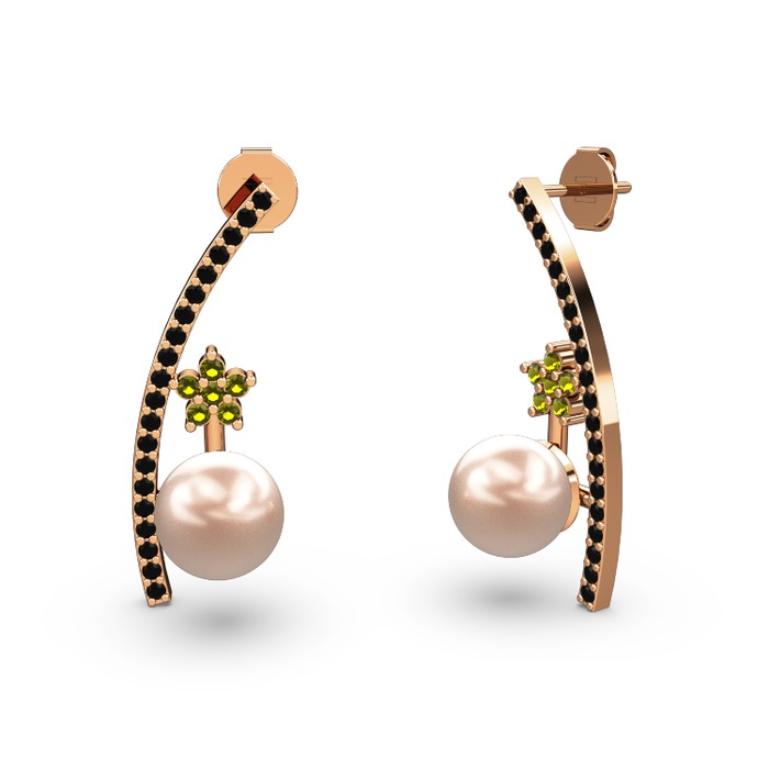 Pembe inci, siyah zirkon ve peridot 8 ayar rose altın küpe