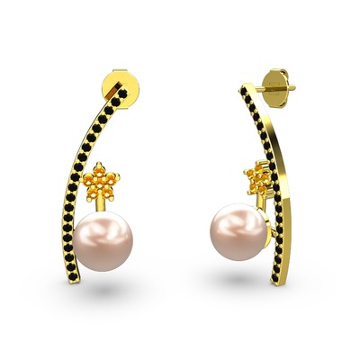 Pembe inci, siyah zirkon ve sitrin 14 ayar altın küpe