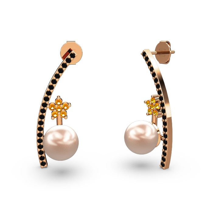Pembe inci, siyah zirkon ve sitrin 925 ayar rose altın kaplama gümüş küpe