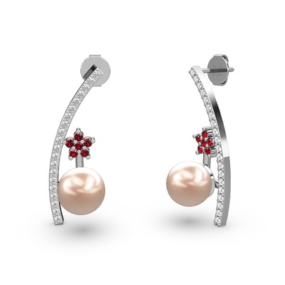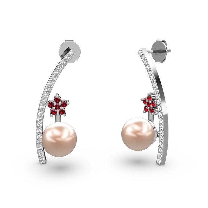 Pembe inci, swarovski ve garnet 925 ayar gümüş küpe