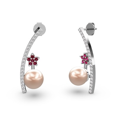 Pembe inci, swarovski ve rodolit garnet 14 ayar beyaz altın küpe