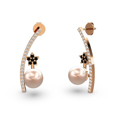 Pembe inci, swarovski ve siyah zirkon 925 ayar rose altın kaplama gümüş küpe