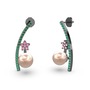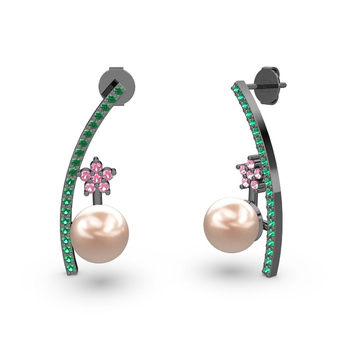 Pembe inci, yeşil kuvars ve pembe kuvars 925 ayar siyah rodyum kaplama gümüş küpe
