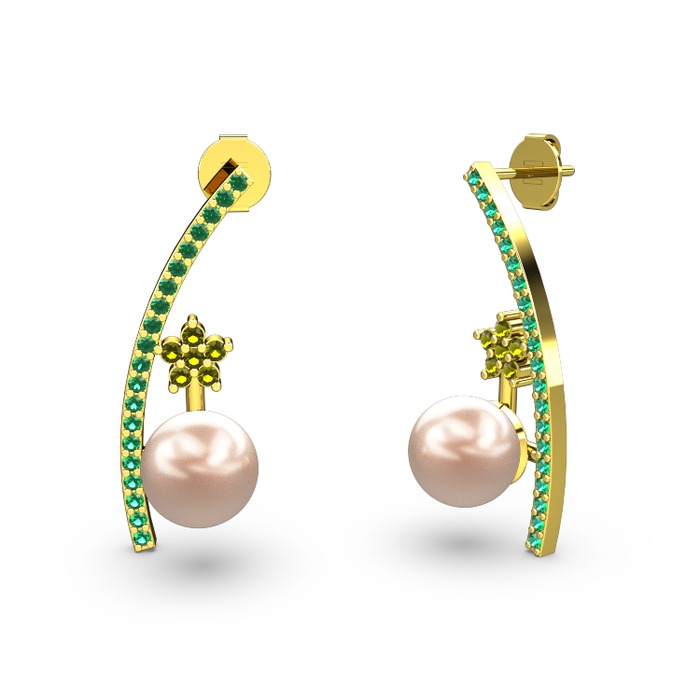 Pembe inci, yeşil kuvars ve peridot 925 ayar altın kaplama gümüş küpe