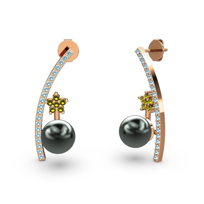Siyah inci, akuamarin ve peridot 925 ayar rose altın kaplama gümüş küpe
