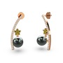 Siyah inci, beyaz zirkon ve peridot 8 ayar rose altın küpe