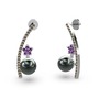 Siyah inci, dumanlı kuvars ve ametist 18 ayar beyaz altın küpe