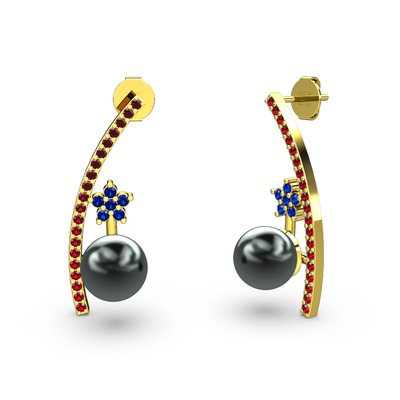 Siyah inci, garnet ve lab safir 14 ayar altın küpe