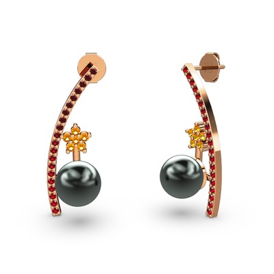 Siyah inci, garnet ve sitrin 925 ayar rose altın kaplama gümüş küpe