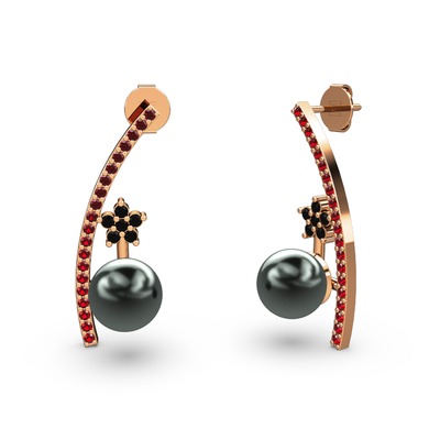 Siyah inci, garnet ve siyah zirkon 18 ayar rose altın küpe