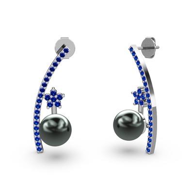 Siyah inci ve lab safir 925 ayar gümüş küpe